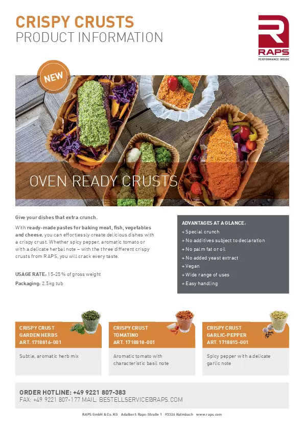 When it starts to get cold outside, every food lover’s heart yearns for something good from the oven. Our crispy crusts provide a quick and easy option. Rustle up simple or sumptuous meals for the whole family with a subtle crunch effect and give your recipes a particularly appetising look.