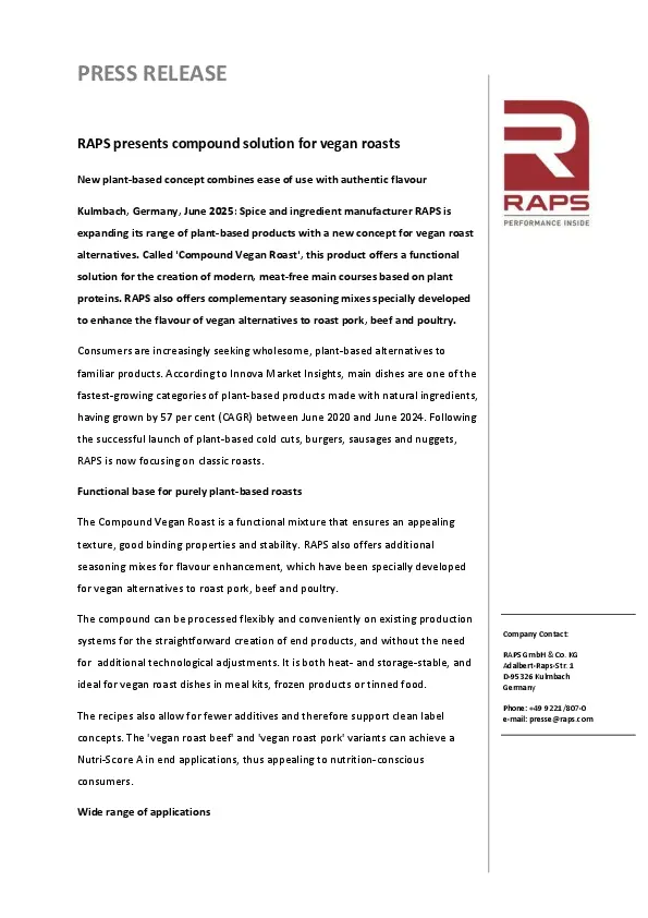RAPS presents compound solution for vegan roasts