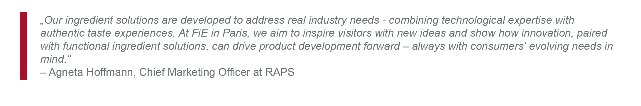 At Fi Europe 2025, discover how Ingredient Excellence by RAPS transforms ideas into taste experiences – through innovative solutions that elevate taste, texture and functionality across applications from meat and plant-based to bakery, dairy, sauces, sweets and snacks.