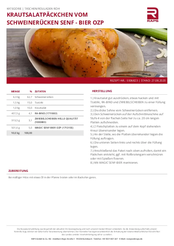 Bei Anwendungsfragen und für die Bestellung wenden Sie sich an Ihren Gebietsverkaufsleiter oder an bestellservice@raps.com & 0800/ 4398379.