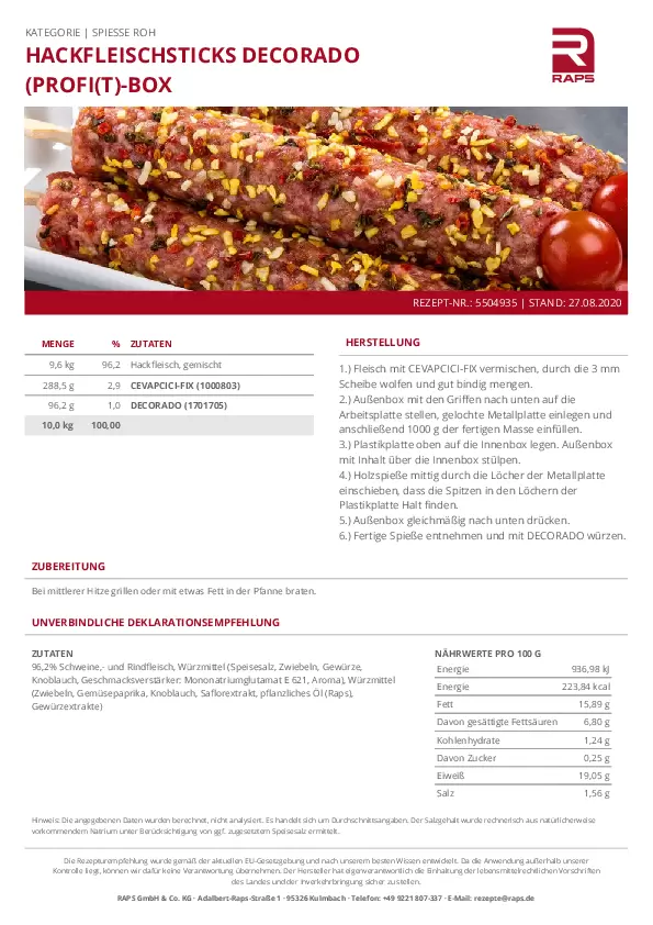 Ein echter Hingucker in der Metzger-Theke sind z.B. die leckere Hackfleischsticks Decorado, die Chorizo-Bratwurst oder die Krautsalatpäckchen vom Schweinerücken: In Ihrer Theke können Sie somit dem Kunden nicht nur Genuss sondern auch ein Stück Nachhaltigkeit präsentieren. Entdecken Sie auf myRAzept unzählige Anwendungsmöglichkeiten, die Grill-Fans das Wasser im Mund zusammenlaufen und nachhaltig mit gutem Gewissen grillen lassen.